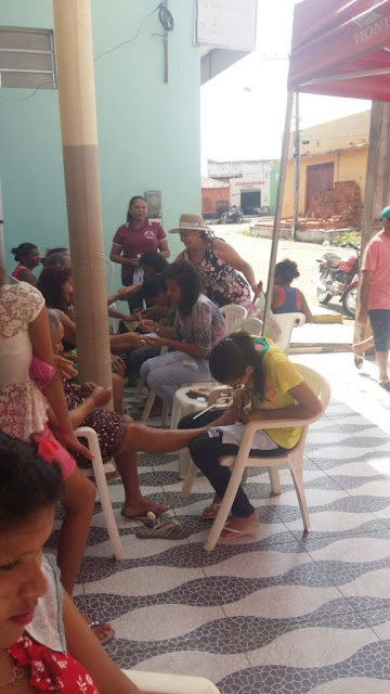 presença de muitos profissionais de beleza cuidando dos pés, mãos e cabelos das